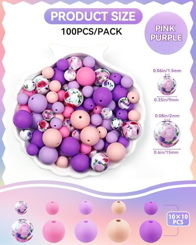 Carefully Curated 5 Trendy Colors: With 5 stunning Pink Purple Mixed colors—4 solid and 1 printed design—this set offers the perfect palette for any project. Each color comes with 5 beads in both 9mm and 15mm, giving you the flexibility to mix and match for unique, eye-catching results