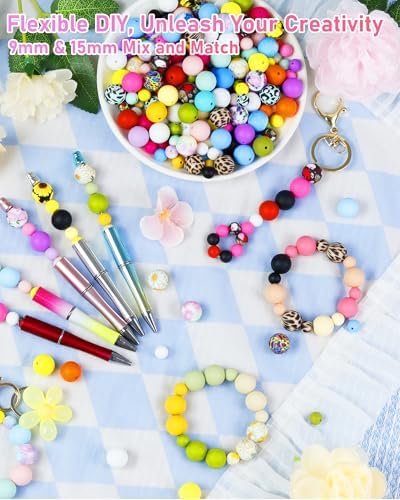 Innovative Mix of 9mm & 15mm: This set includes 100 silicone beads featuring a unique combination of 9mm and 15mm sizes. The mix of sizes opens up endless creative possibilities, allowing you to design balanced and innovative pieces. With 100 beads, you’ll have plenty of options for keychains, bracelets, and other DIY crafts
