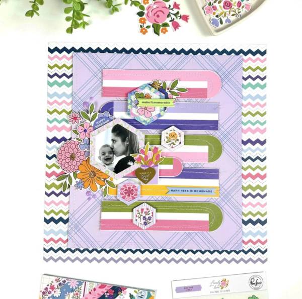 If you’re wanting to take your scrapbooking to the next level, do just that, add lots of levels and layers. Layering adds amazing depth and texture to any design! Layer up papers, stickers, embellishments or even photos, you can stack, stagger, over lap, fan them out and mix them up to create so much extra interest to your scrapbook designs. It’s also a fantastic way to use up all those scraps! So let’s take a look at some lovely layouts that have lots and lots of layers.