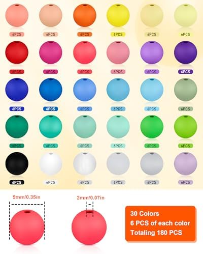 BEAD TYPES AND SIZES: you will receive 180pcs 9mm silicone beads, 30 different colors Silicone Beads, 6pcs for each color, enough for you to make some lovely necklaces or bracelets for your partner, multiple colors can meet most people’s decorative needs