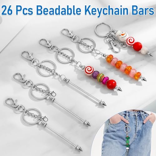 【What You Will Get?】You will get 26 beadable keychain bars in a white card box; including 26 pcs key ring, 26 pcs swivel snap hook, 26 pcs Beaded bar and 26 pcs short chains with lobster clasp. You can create Various styles of keychain charm chains, enough quantity for you to share with your family.