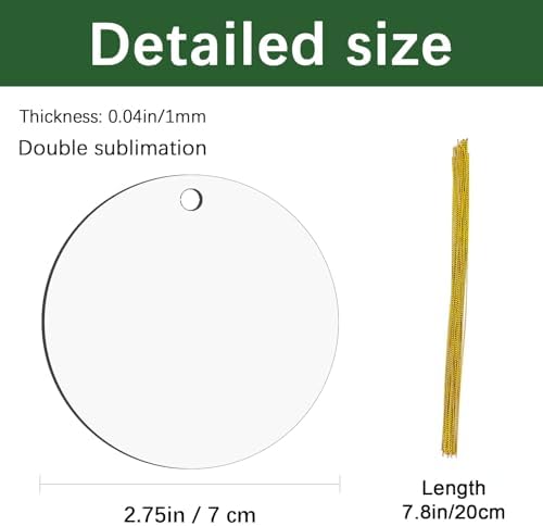 【 Package Contents 】32 pcs Sublimation Ornament blank, Ornament 2.75 inches /7cm in diameter, 0.039 inches /1mm thick, 32 pieces of string