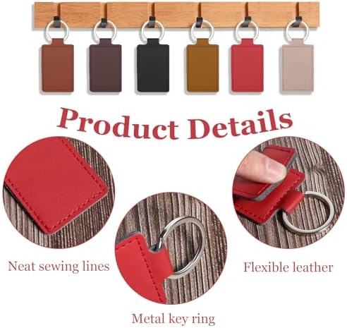 Leather Key Fob Kit: The key fob kit include 48 pcs 1.57 x 2.56 inch leather keychain blanks in 6 various colors, 8 pcs of each color, a variety of colors to meet your daily needs, the leather keychain can be used for diy stamping crafts, and backpack and keychains decoration