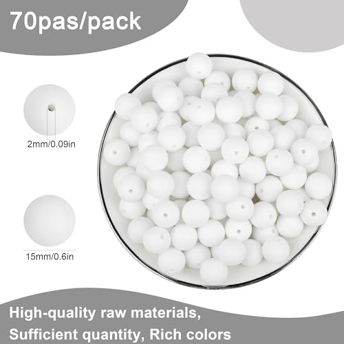 ✾[Quantity and Size of Assortments]You will receive 70 pcs white 15mm silicone beads for your keychain or other crafting needs, these silicone beads have 0.078 inches/2mm holes for easy threading and use. Unleash your imagination and create personalized crafts!