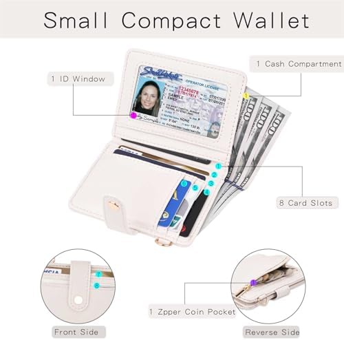 Wristlet Wallets for Women, Small Keychain Wallets Woman RFID Blocking Bifold Credit Card Holder with Zipper Coin Pocket,ID Window