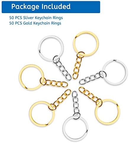 Package Contient: It includes 100pcs keychain rings with 50pcs sliver keychain rings and 50pcs gold keychain rings.