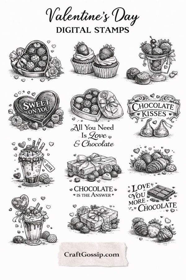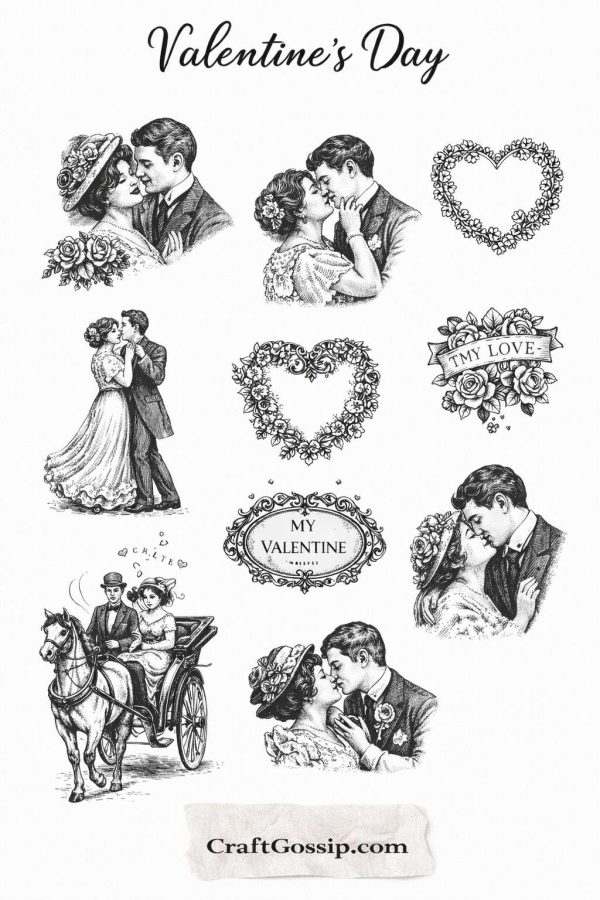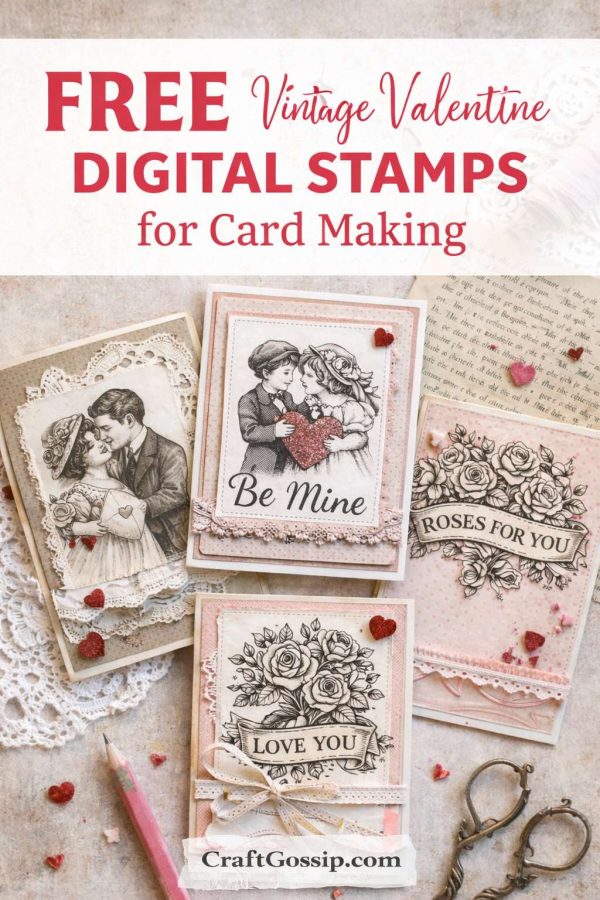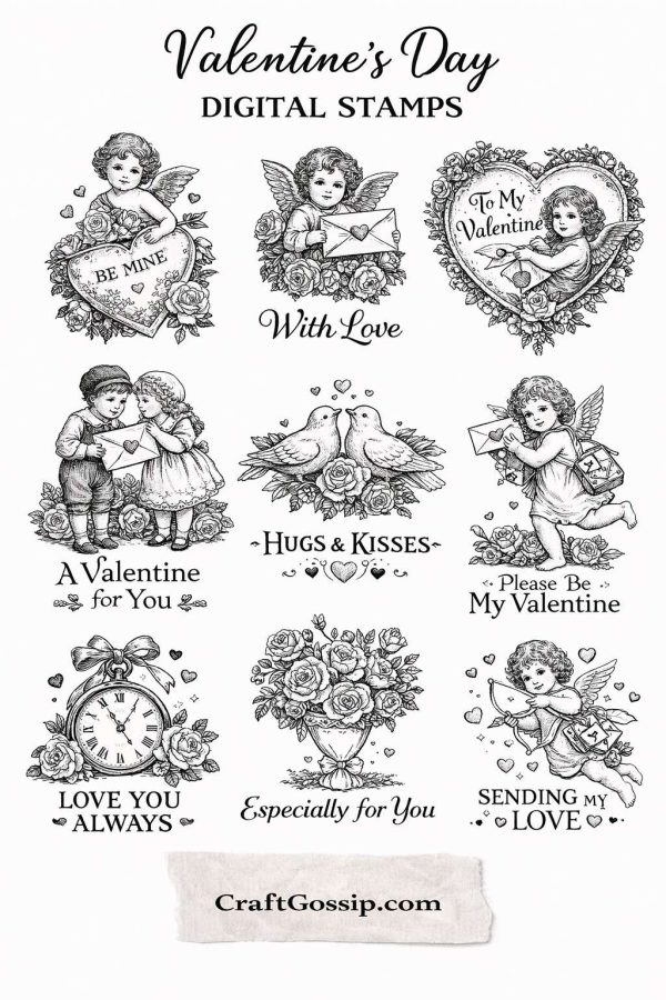 All of these vintage Valentine digital stamp sheets were created specifically for practical crafting — not just to look pretty on screen.