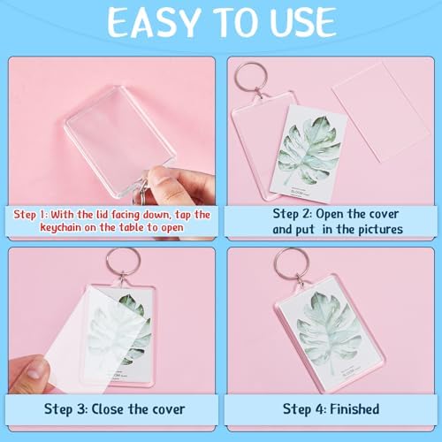 Easy to use: you can just simply remove the clear casing panel, insert your photo and then clip the panel back into place, the blank photo keychain keyrings are clear on both sides, so you can insert 2 pictures at once time