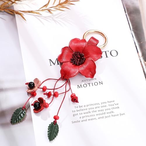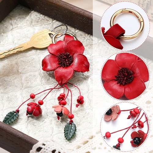 Retro and Boho: the main shape of our leather flower tassel keychain is a flower with tassel and leaf style, which looks full of bohemian style, is a good accessory choice to finish your bag