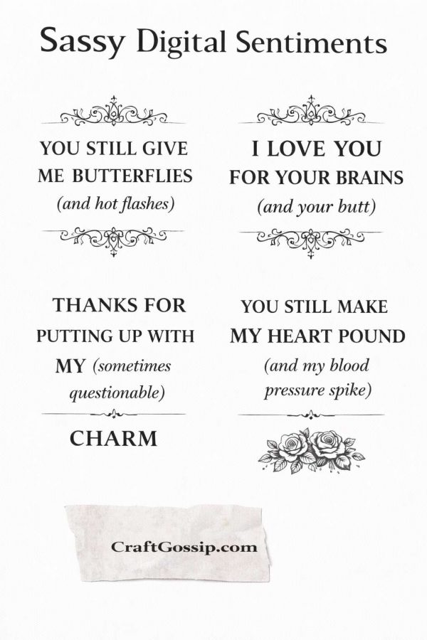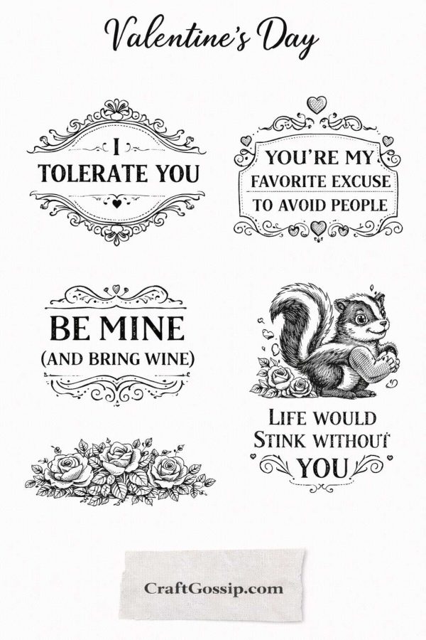 These Sassy Digital Stamp Printables for Valentine’s Day were created for card makers who like their romance served with a side of humor. They’re cheeky, honest, and perfect for relationships that have moved well past the “roses and teddy bears” stage and into the “you’re still my favourite person — most days” phase.