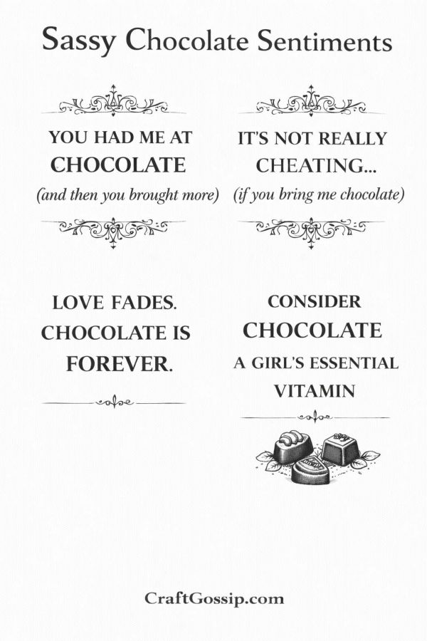 - Pairing the sentiment with a small heart or chocolate-themed embellishment