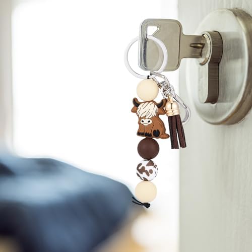 Quality Material: the highland cow keychain is made with durable and fade resistant material; Made with a combination of silicone beads and leather fringe, this keychain is designed to stand the test of time while maintaining its unique and fashionable look; Its classic color makes it a versatile accessory for your personal use or to gift someone special